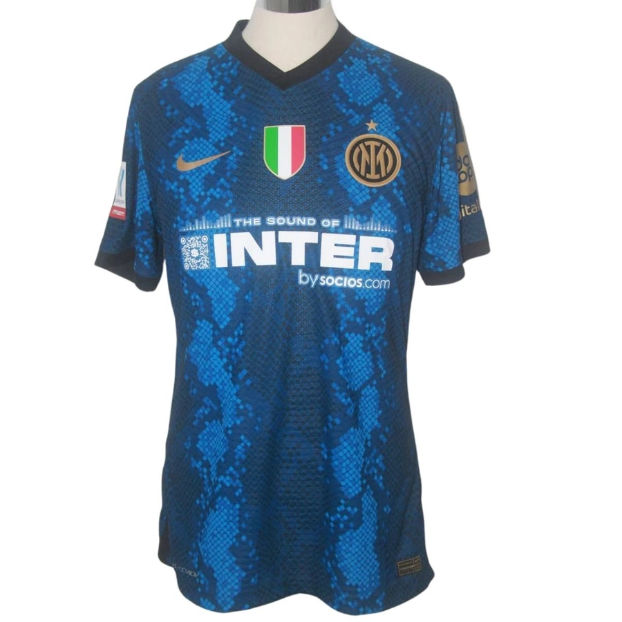 Inter match shirt prepared/worn by Dzeko for the match against Juventus, played on 12/01/2022, match valid for the Super Cup Final, season 2021/22.