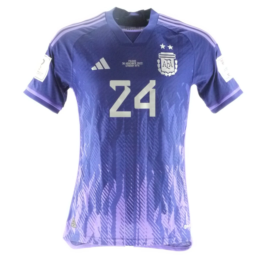 Argentina match shirt issued/worn by Enzo Fernandez in the match against Poland played on 30/11/2022, valid for the 2022 World Cup group stage.
