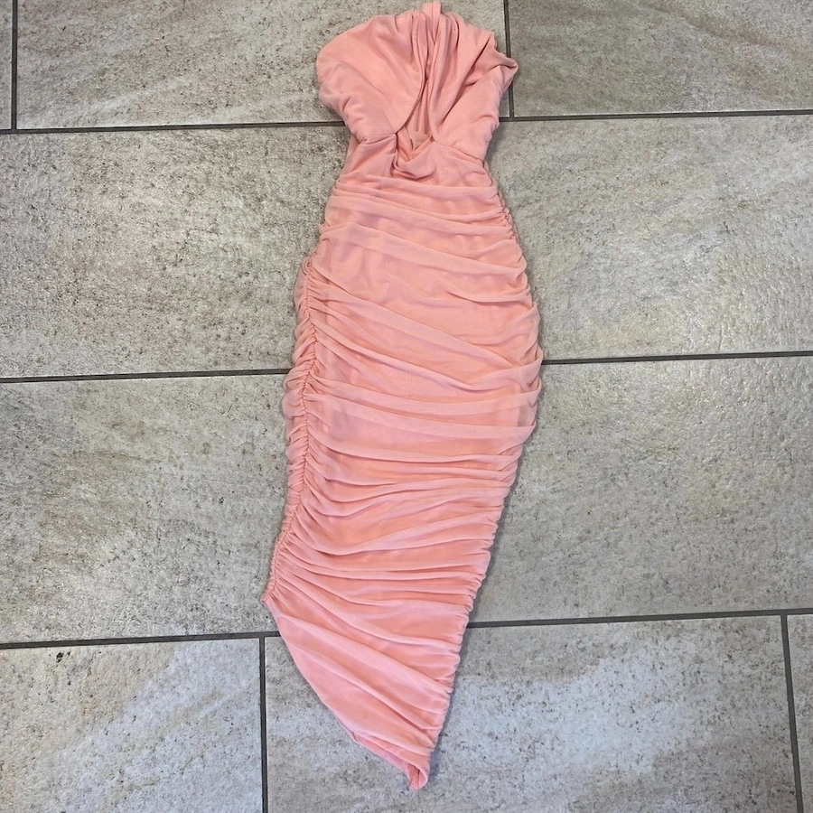 Pink Oh Polly dress worn by Chiara Nasti, an Italian influencer and entrepreneur known for her strong social media presence and collaborations in the fashion and beauty world.