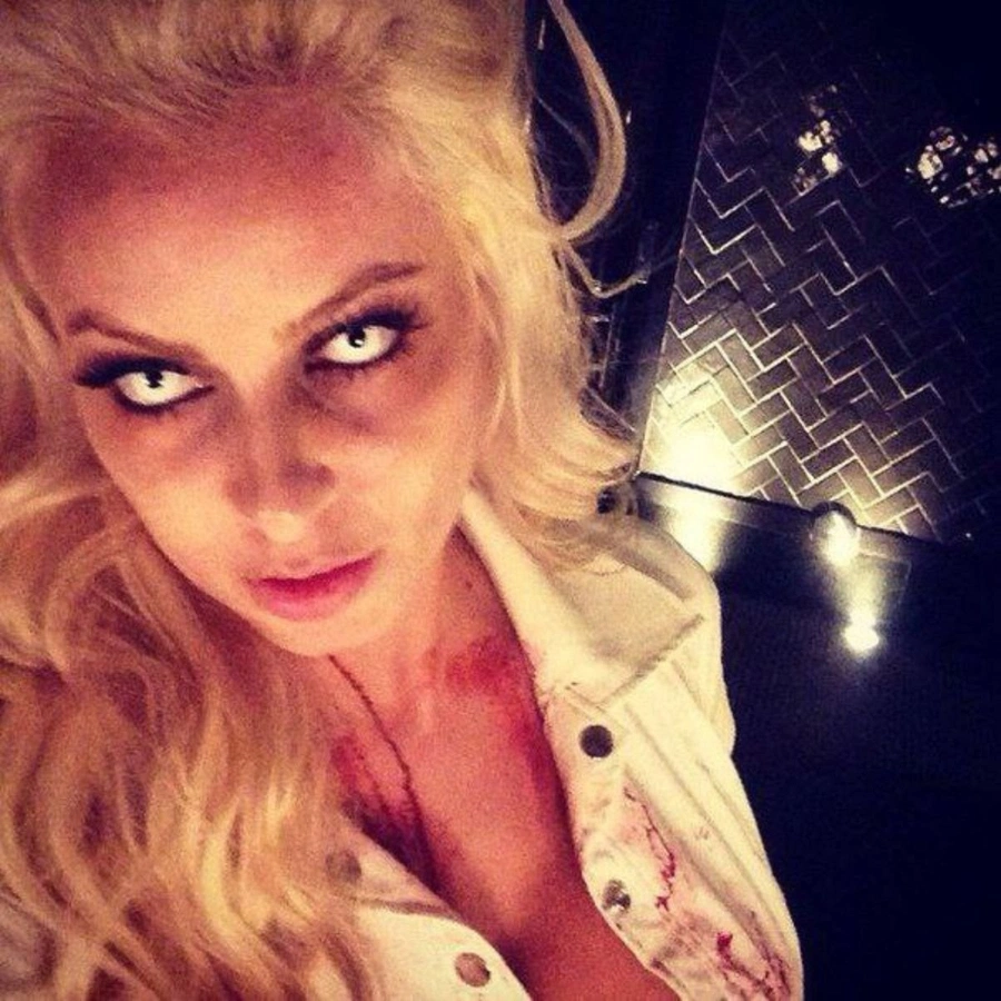“Zombie Nurse” Halloween Costume worn by performer Maryse Ouellet during the Halloween Party in Las Vegas, October 2014.