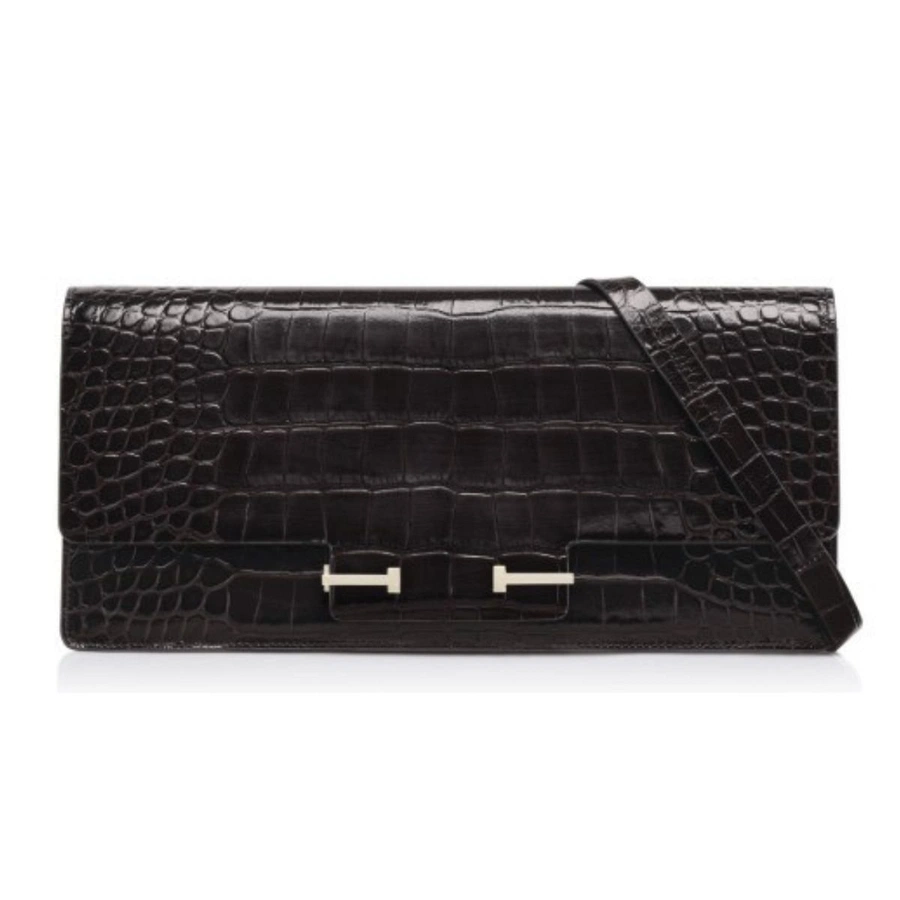 Tom Ford Espresso shoulder bag in shiny crocodile embossment, medium.