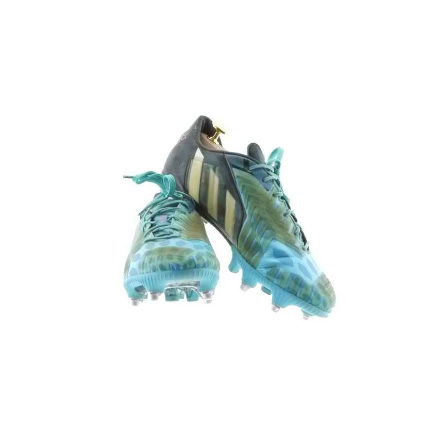 The boots show signs of wear, plausibly related to game actions, however no photographic evidence of these has been found and therefore it is not possible to guarantee beyond any reasonable doubt that they were actually worn in a match (and not perhaps become dirty in some other way over time).