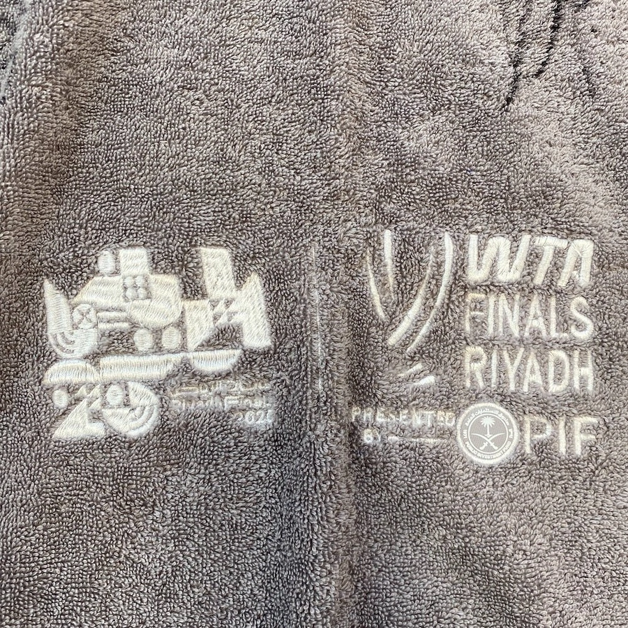 Official towel used during the WTA Finals Riyadh, autographed by Jasmine Paolini, Sara Errani and Ons Jabeur.