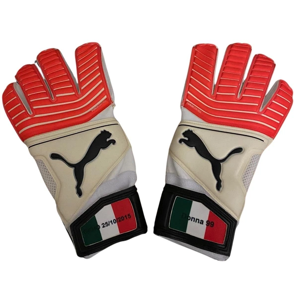Match gloves issued by Donnarumma in an official match during the Milan experience, during 2017/18 season.
