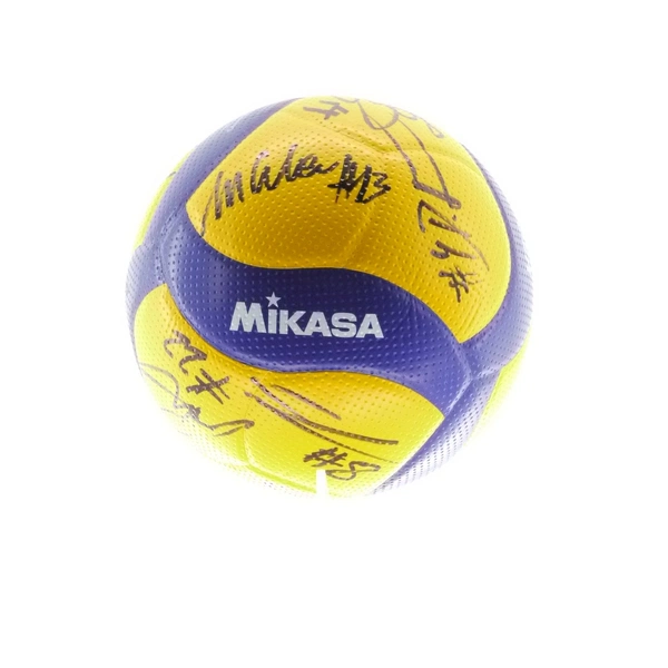 The ball has been autographed by several players, including Bryan Argilagos, Donovan Dzavoronok, Gabrijel Cvanciger, Simone Giannelli, Agustin Loser, Wassim Ben Tara, Massimo Colaci, Yuki Ishikawa, Kamil Semeniuk, Oleh Plotnyskyi, Roberto Russo, Marco Gaggini, and Federico Crostato.