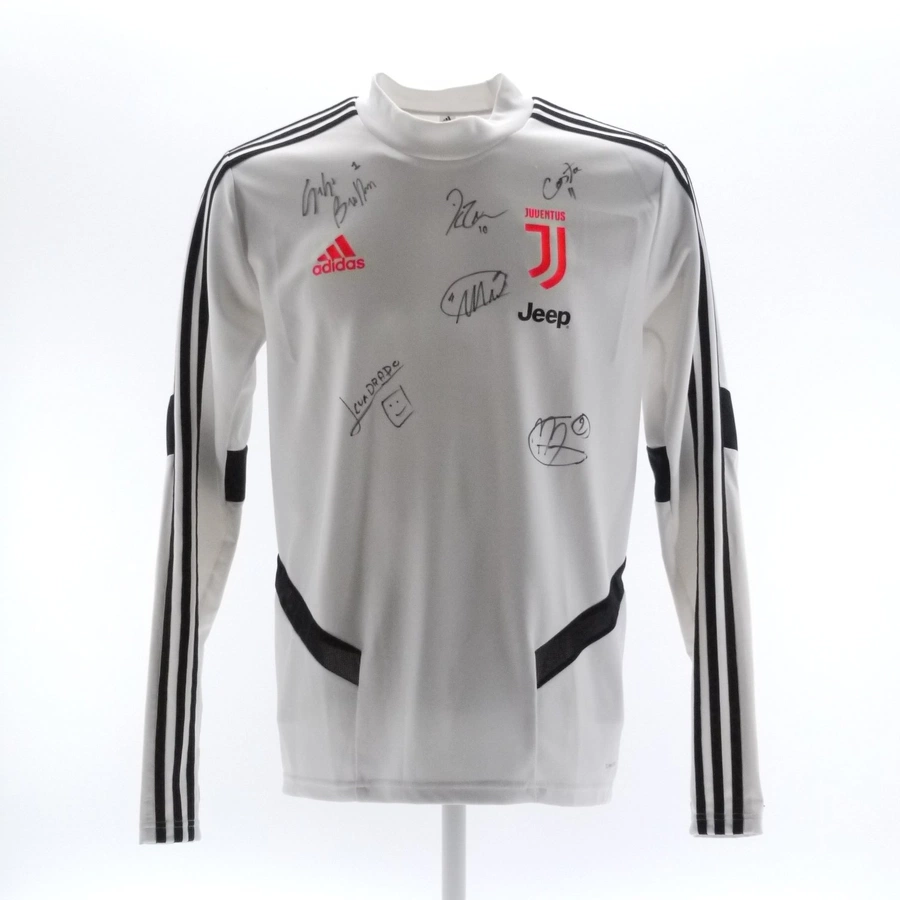 The shirt has been signed by the following players of the team: Buffon, ⁠Dybala, Douglas Costa, De Ligt, ⁠Higuain, ⁠Cuadrado.