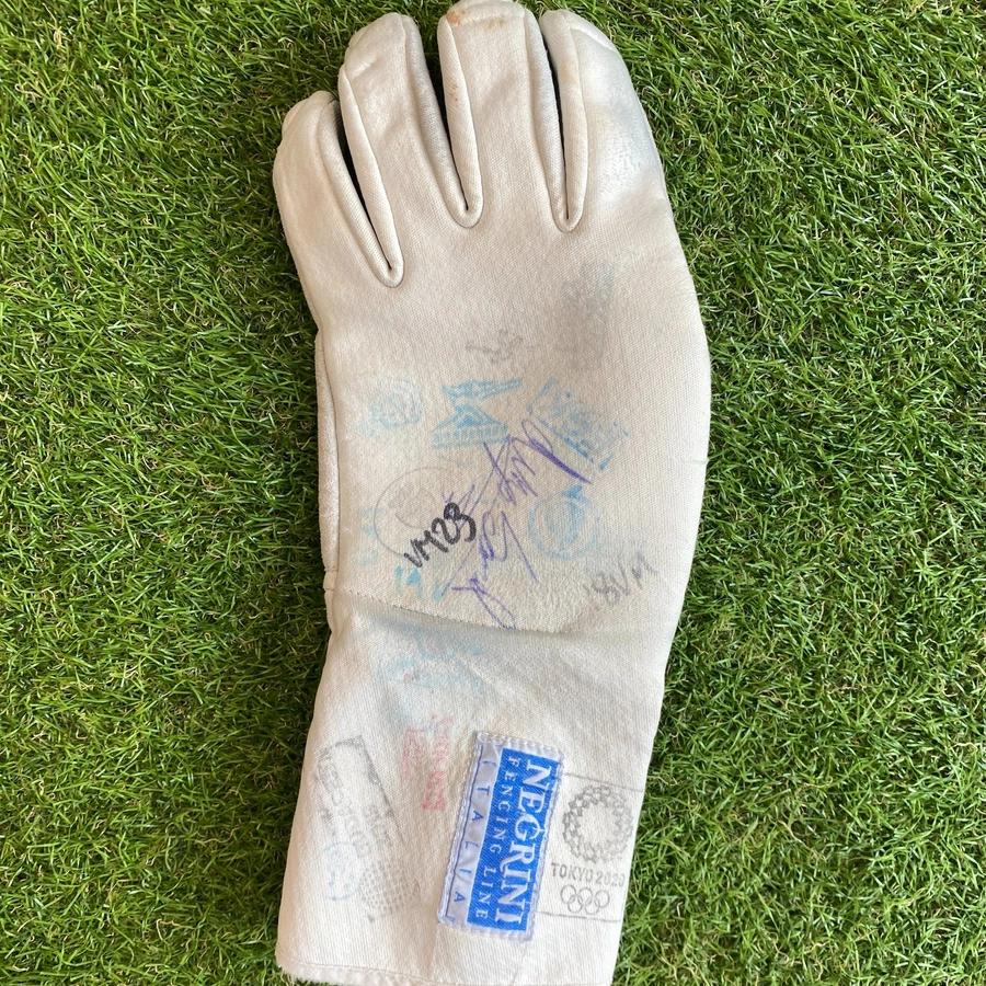 The Italian saber fencer, silver medalist at the 2021 Tokyo Olympics and bronze medalist at the 2024 Paris Olympics, signed this glove, making it a unique piece of great sporting and collectible value.