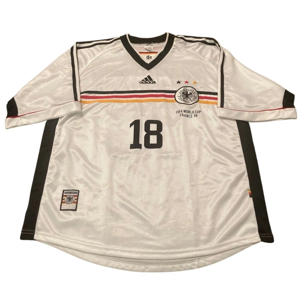 Vintage store Germany shirt from the 1998 World Cup, personalized with Klinsmann's name and number.