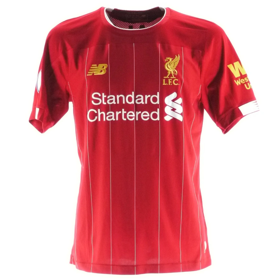 This season, Liverpool have used both match and store versions of their shirts, which can be distinguished by the fact that the former feature the gold *Elite* label and a larger Western Union sleeve sponsor, while the latter have a silver *Authentic* label and a smaller sleeve sponsor.