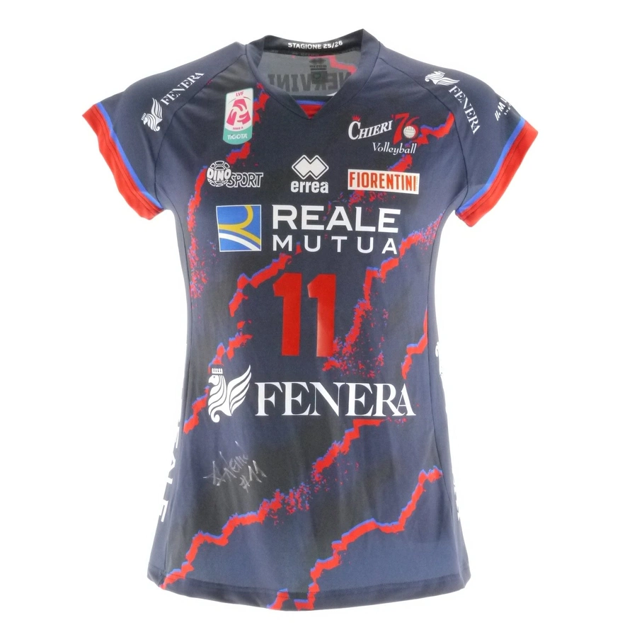 Chieri '76 Volleyball team store shirt personalized with name and number of Nervini. The shirt was donated by Chieri '76 Volleyball to support the Stelle nello Sport campaign.