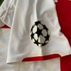 This memorabilia is part of the match supply made available to players during official competitions and is different in its features in relation to the ones sold in fanshops, it could have been worn during the match and washed after the end of the match or prepared for the match but then not used.