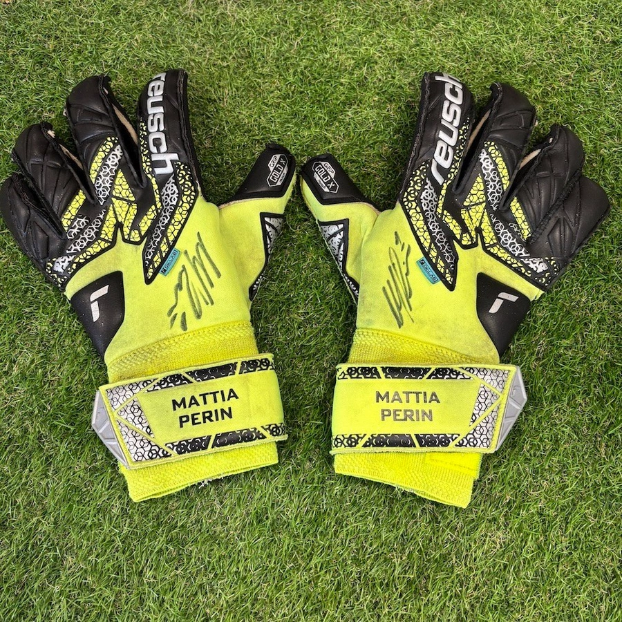 Match gloves worn by Perin in a match with Juventus, 2025/26 season.