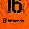 This memorabilia is part of the match supply made available to players during official competitions and is different in its features in relation to the ones sold in fanshops, it could have been worn during the match and washed after the end of the match or prepared for the match but then not used.