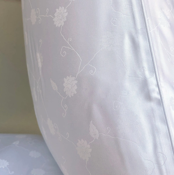 • 1 white Jacquard top sheet 270x300cm with plain hem