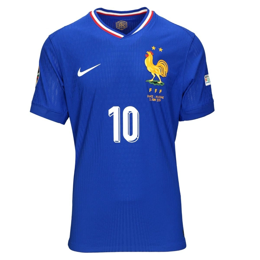 France match shirt issued/worn by Mbappé for the match against Pologne played on 25/06/2024 valid for the quarter-finals, season 2024.