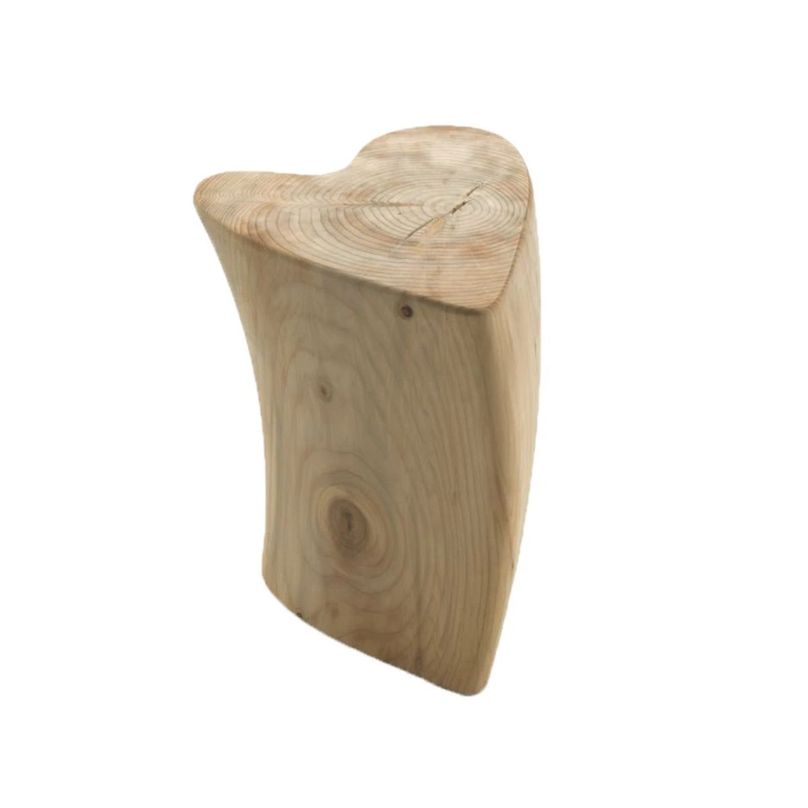 Stool made of solid scented cedar wood, crafted from a single block to resemble a heart.