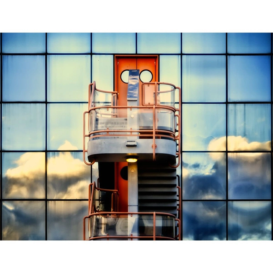 Reflection of the winter sun on a building in Milanofiori, captured in the dead of winter at sunset.