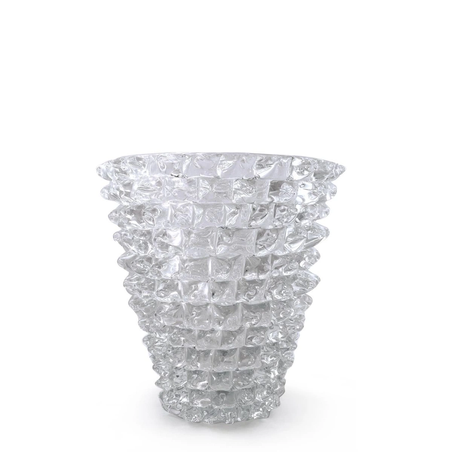 This vase embodies the pinnacle of Murano glassmaking, blending tradition and innovation in a single, extraordinary work. Born from an idea by Ercole Barovier in the 1940s and crafted using the revolutionary "rostrato" technique, patented by Barovier & Toso in the 1930s, this vase is distinguished by its surface rich in reliefs and protrusions. This meticulous craftsmanship requires great skill. The transparency of the glass gives the vase an extraordinary shine and a unique visual effect.