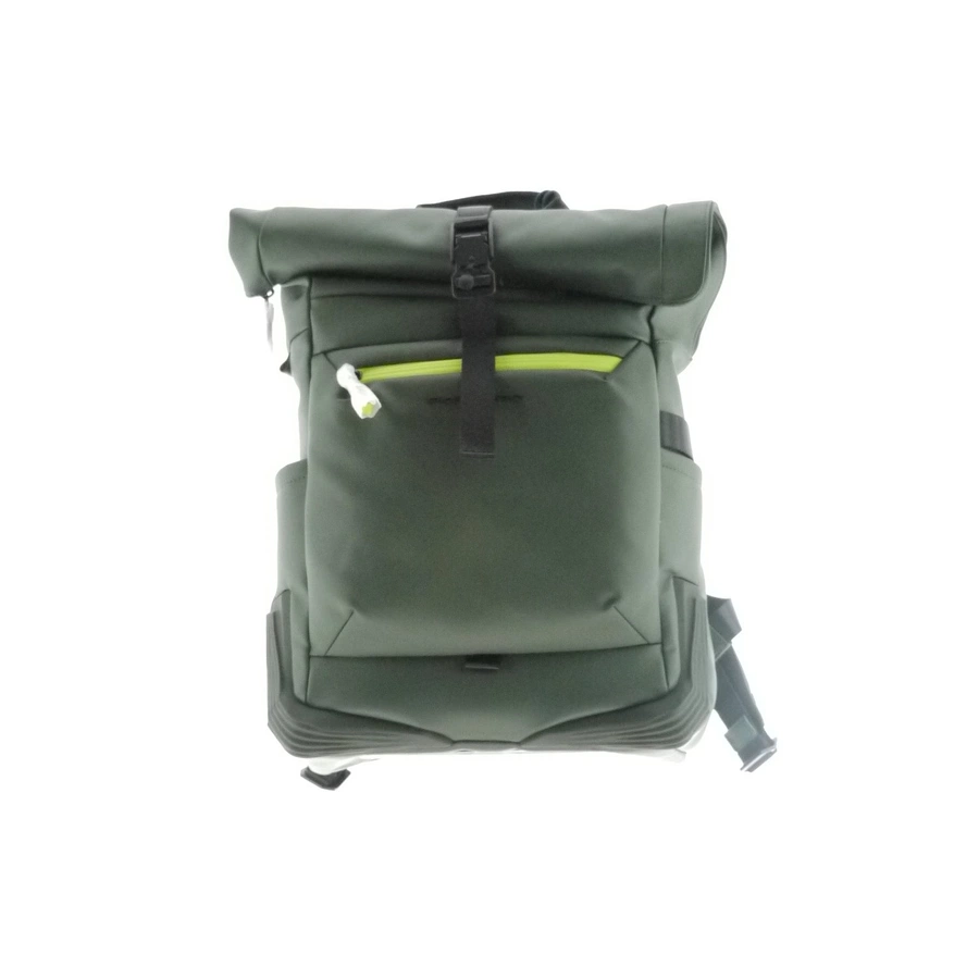 Water-resistant roll-top laptop and iPad® backpack with adjustable chest strap, padlock and portable bike light attachments, and RFID protection.