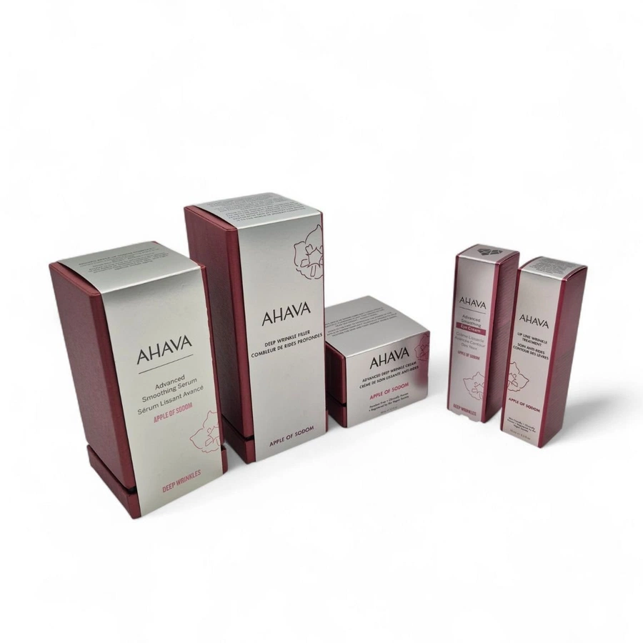 An exclusive anti-aging treatment with 5 products by Ahava, based on the innovative extract of Apple of Sodom™, a desert plant with extraordinary regenerative properties, and Osmoter™, a blend of hydrating Dead Sea minerals. This line helps reduce deep wrinkles, restore volume, and give skin a smoother, firmer appearance.