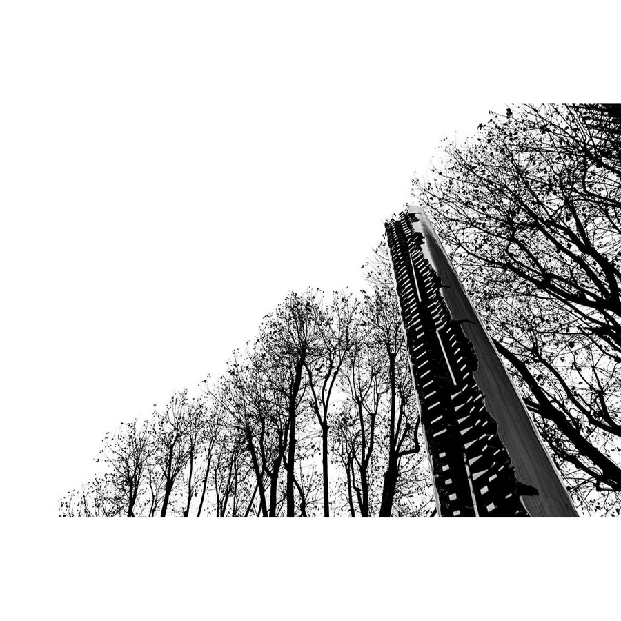 I had chosen the perfect day for light and sky to photograph the architecture of the Bocconi Campus. And almost by chance, I stumbled upon Arnaldo Pomodoro's Column. I was struck by the beauty of this work and its relationship with nature. Trunks, branches, and the Column rise upward, silhouetted against the sky.