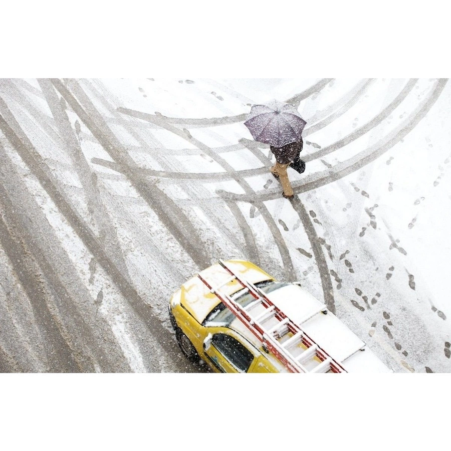 At some point in their lives, many photographers have attempted to contemplate the world from their window. From Joseph Niépce with his famous View from the Window of the House at Grasse to Joseph Sudek with his series "From My Studio Window." Even W. Eugene Smith, after working all over the world, chose to use a single, reassuring vantage point: his window. However, the most evocative moments are those awaited and photographed by Paul Strand and André Kertész. Landscapes under the snow, with the presence of small human figures. In this research, I preferred color to black and white; I played on the contrast between the white snow and the marks left by car tires. People on foot and on bicycles. With and without umbrellas. People coming and going, all in a hurry. ("From the Window" 2008-2010)