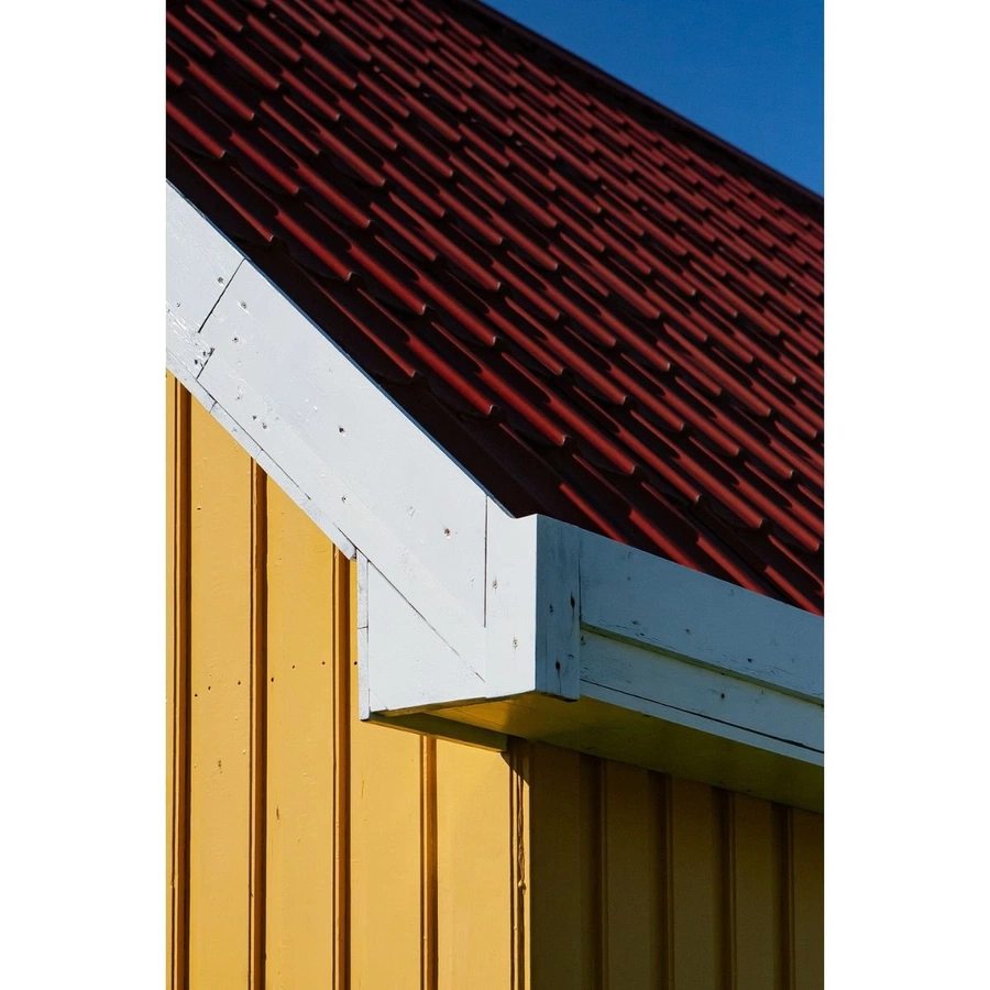 Walking through the streets illuminated by the clear northern light, this architectural detail caught my eye. The red roof, white wood, and yellow walls combine in an almost painterly composition.