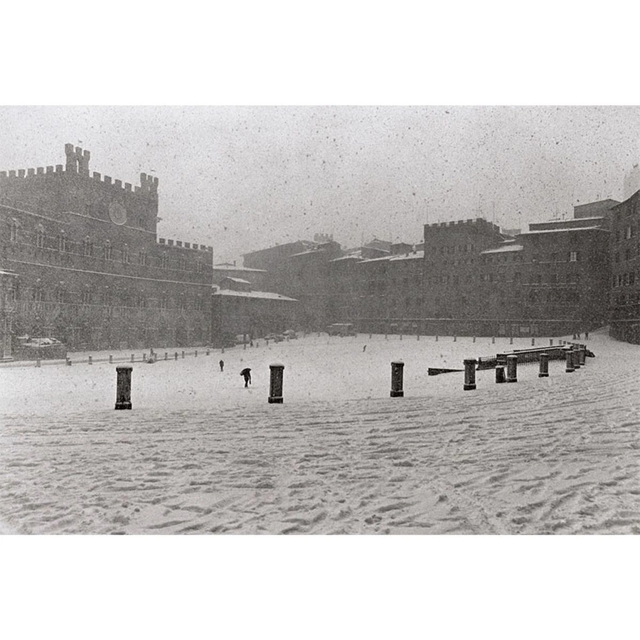 Pepi Merisio's relationship with Siena has always been intense and profound. Since the 1960s, Merisio has traveled to the city several times to photograph the Palio and its people. For the Bergamo-born photographer, Siena was an almost obligatory stop, even during his frequent trips to Rome in the service of Pope Paul VI. In this shot, the iconic and unmistakable Piazza del Campo is not teeming with people gathered to support their contrada and their horse, but is calm, almost "still," covered in a white and romantic layer of fresh snow. His bond with the city was sealed in 1972 with the publication of a book entitled "Siena: a land, a history, a celebration," with texts by his friend and then-mayor Roberto Barzanti.