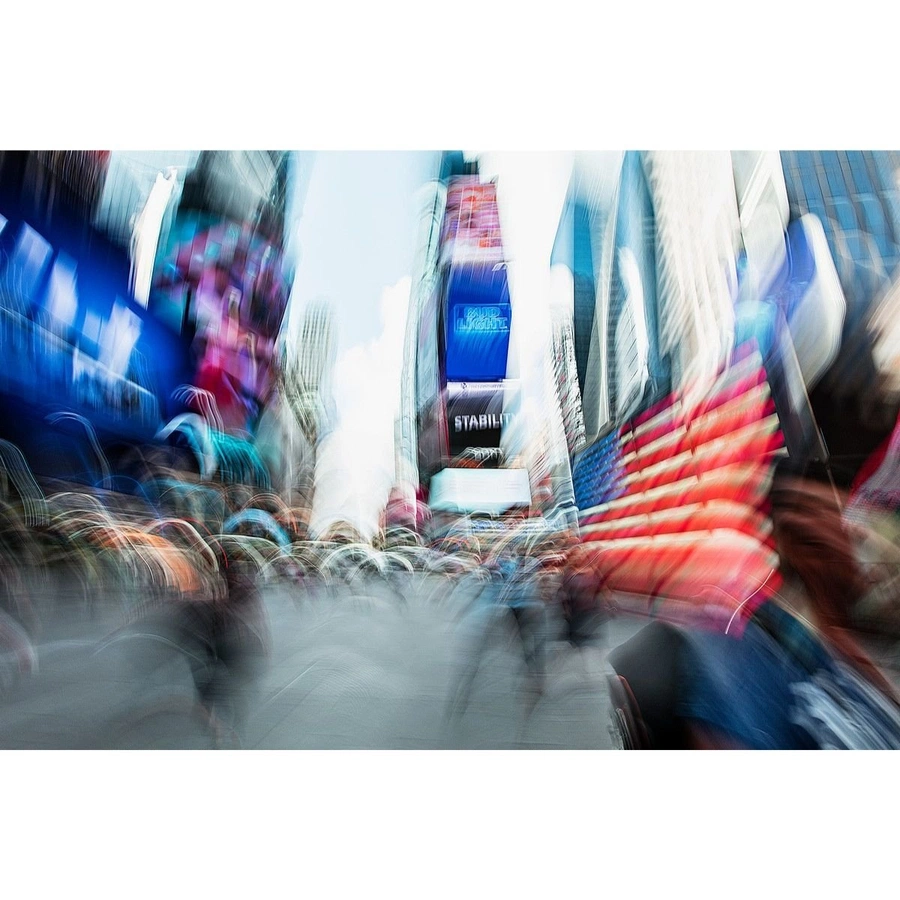 This image was taken in Times Square around the time of Donald Trump's first election. The American flag flutters in the foreground, while in the background the word "STABILITY" appears almost magically on the Times Building's big screen—an extraordinary coincidence. Yet, behind that visual promise of solidity, the buildings seem on the verge of collapse, as if to suggest the fragile tension of an era in profound transition.
