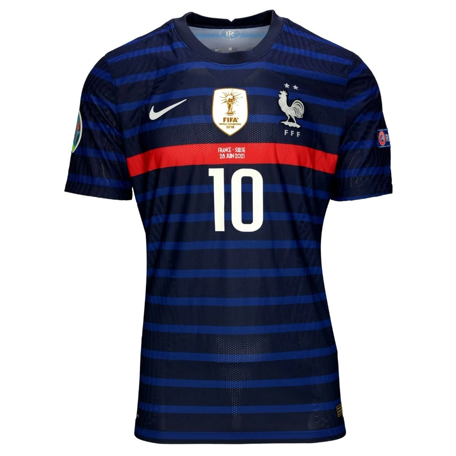France match shirt issued/worn by Mbappe in the match against Switzerland played on 28/06/2021, valid for the Euro2020 round of 16.