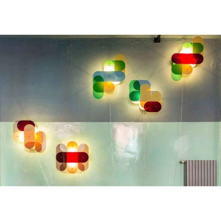 The lights are composed of overlapping layers of plexiglass in the shape of a stadium. When the lights are turned on, new shapes and colors appear. The plexiglass layers have varying degrees of translucency, ranging from opaque to translucent. As with all my other lights, colors and configurations can be customized.