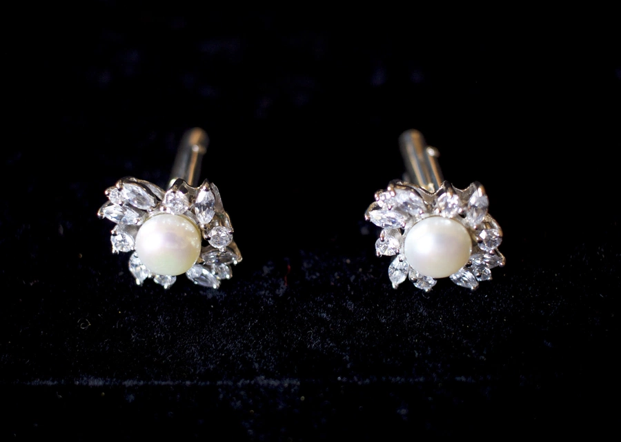 Dalle dimensioni contenute — 2 cm x 1,5 cm, ma dall’effetto prezioso**, i gemelli sono decorati con strass bianchi e piccole perle, che creano un raffinato contrasto tra brillantezza e opacità. Gli strass catturano la luce con vivacità, mentre le perle aggiungono un tocco classico, sobrio e ricercato.
