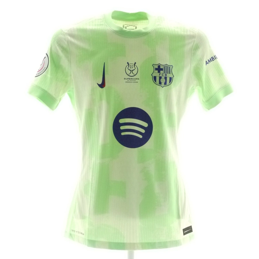 La maglia gara del Barcellona preparata / indossata da Lamine Yamal in occasione della semifinale di Supercoppa di Spagna giocata contro l'Athletic Bilbao il 08/01/2025, stagione 2024/25.