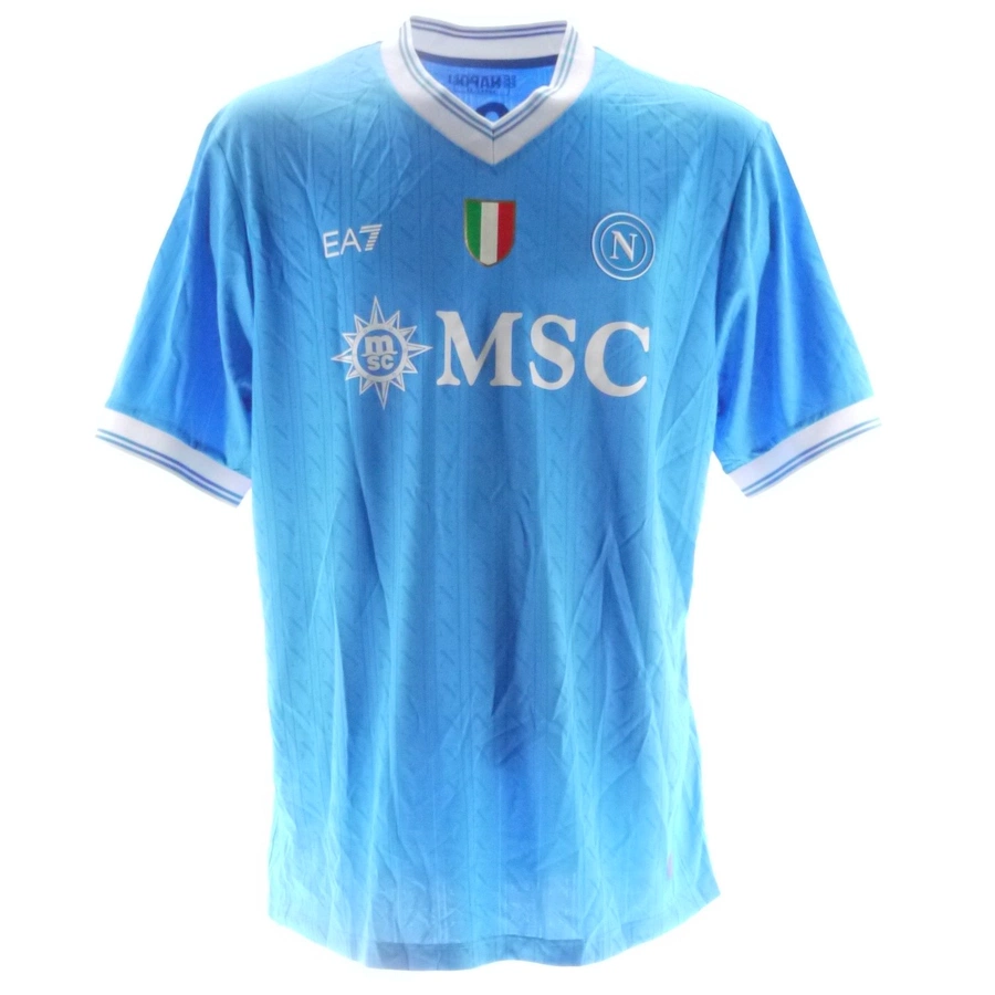 La maglia gara del Napoli indossata in panchina da Saco in occasione della partita amichevole contro il Brest giocata il 03/08/25, stagione 2025/26.