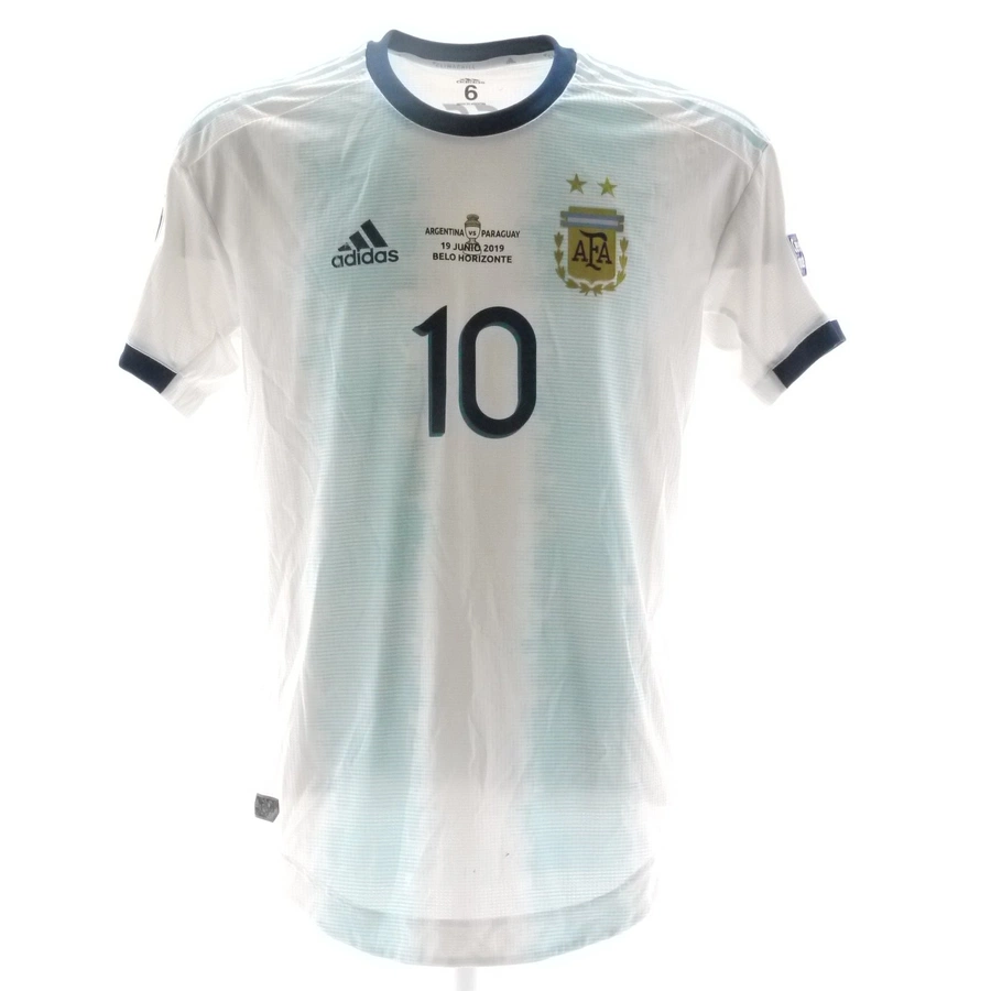 Maglia gara dell'Argentina preparata da Messi nella partita contro il Paraguay giocata il 20/06/2019, valida per la fase a gironi della Copa America 2019, stagione 2019.