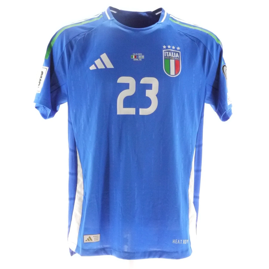 Maglia gara dell'Italia indossata da Mancini nella partita contro Israele giocata il 14/10/2025, valida per le qualificazioni ai Mondiali 2026, stagione 2025/26.