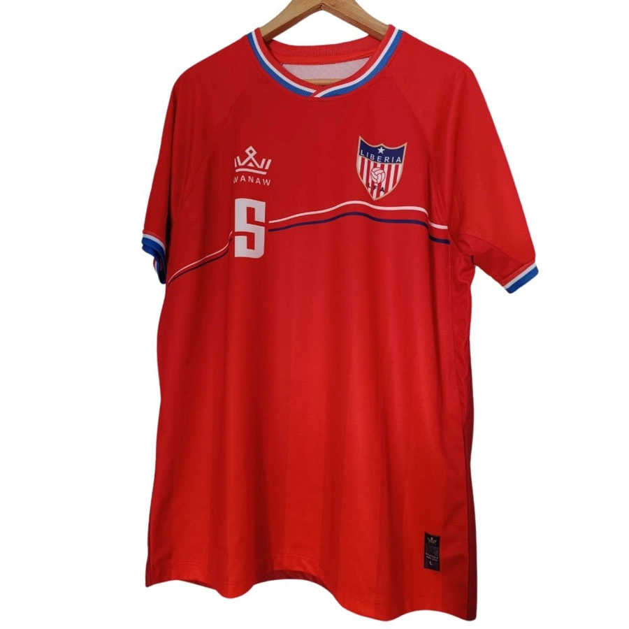 Maglia gara della Liberia preparata / indossata dal numero 5 in occasione di una partita di qualificazione al Mondiale FIFA 2026.