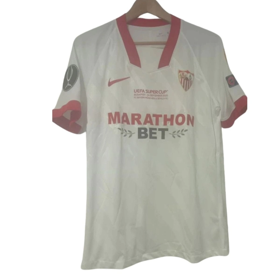 Maglia gara del Siviglia preparata / indossata da Escudero nella partita contro il Bayern Monaco giocata a Budapest il 24/09/2020, valida per la finale di Suoercoppa Europea.