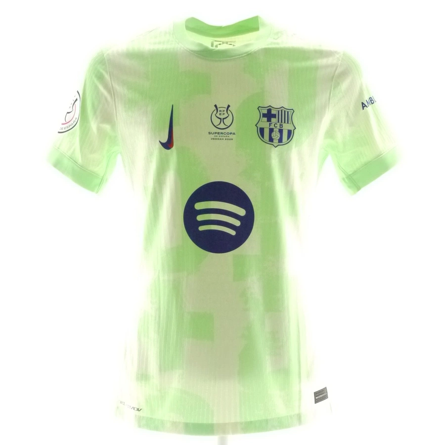 La maglia gara del Barcellona preparata / indossata da Lamine Yamal in occasione della semifinale di Supercoppa di Spagna giocata contro l'Athletic Bilbao il 08/01/2025, stagione 2024/25.