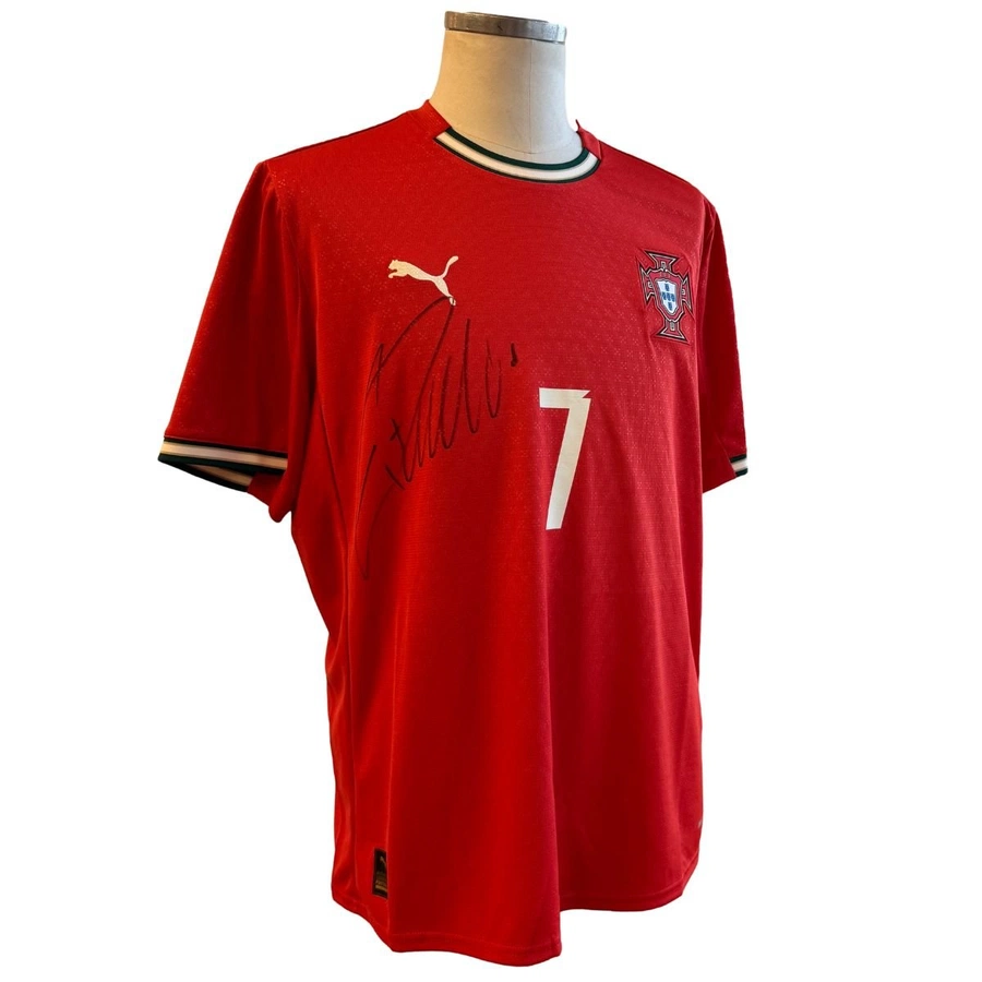 La maglia store del Portogallo stagione 2025, personalizzata con nome e numero di Ronaldo.