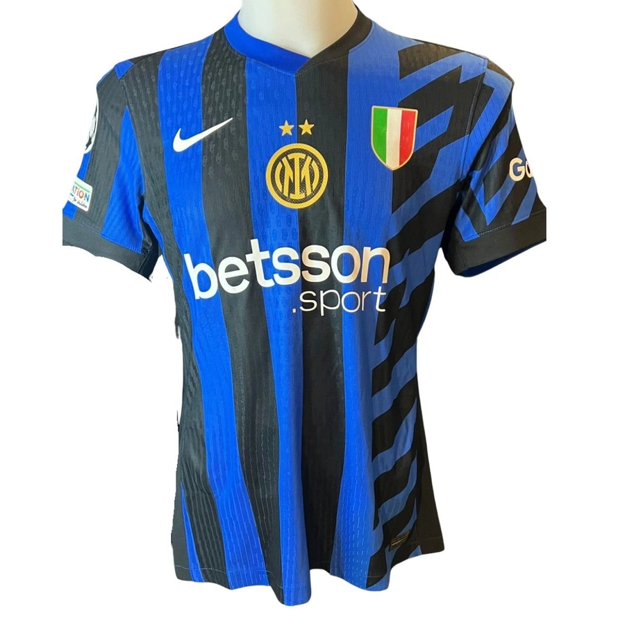 La maglia gara dell' Inter preparata / indossata da Barella in occasione di una partita di Champions League, stagione 2024/25.