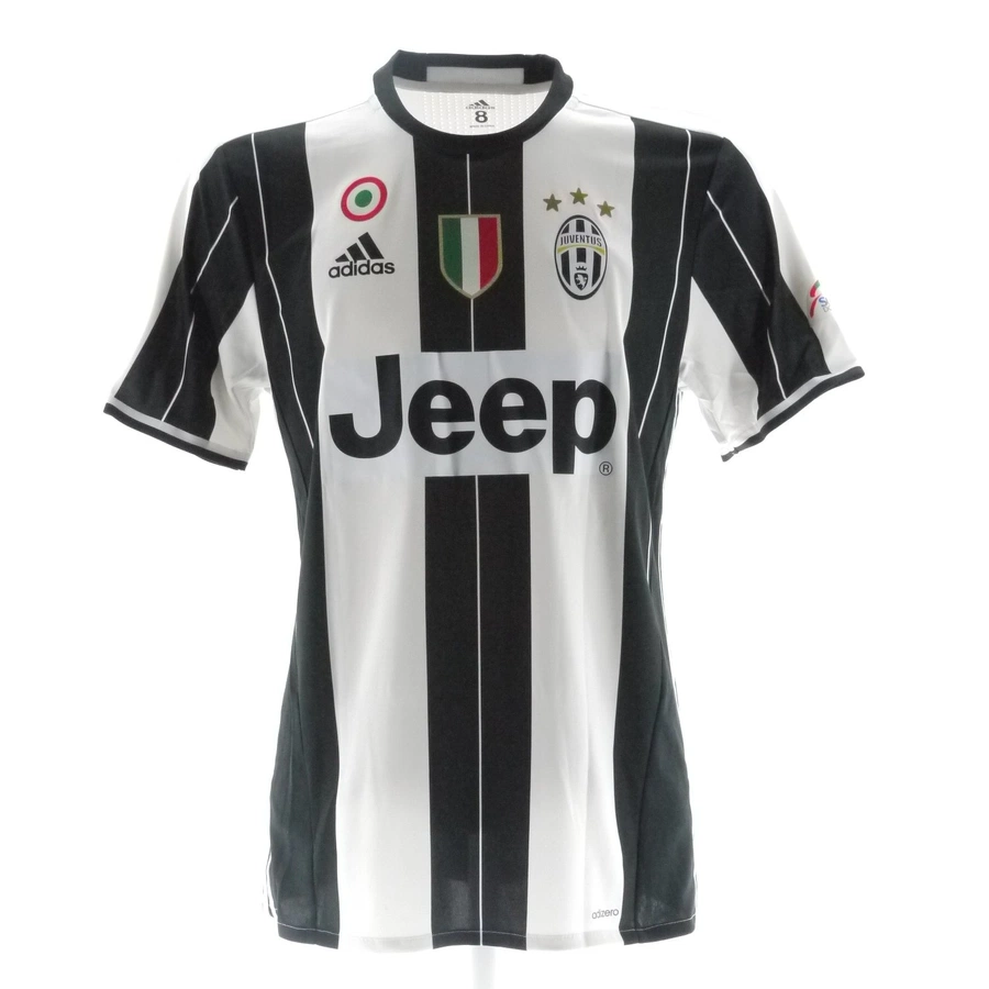 Maglia gara della Juventus preparata da Bonucci nella finale di Supercoppa Italiana giocata contro il Milan il 23/12/2016, stagione 2016/17.
