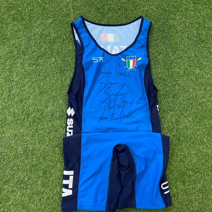Il body della Nazionale italiana di canottaggio dei Mondiali di Canottaggio di Shangai 2025, autografato dal team di quattro di coppia maschile.