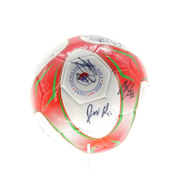 Il pallone sonoro è stato autografato da alcuni giocatori della nazionale italiana, tra cui Daniel Maldini, Giovanni Di Lorenzo, Alessandro Buongiorno, nel marzo 2025 ad Appiano Gentile a La Pinetina.