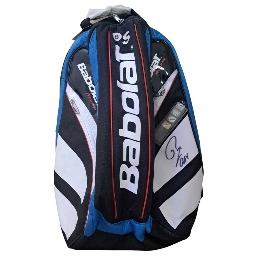 Il portaracchette Babolat autografato dal campione di tennis spagnolo Rafael Nadal.