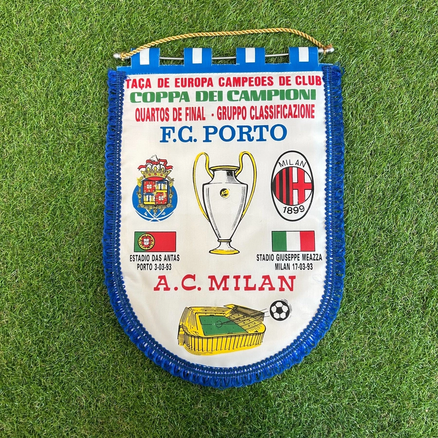 Il gagliardetto ufficiale di andata e ritorno dei quarti di finale di Coppa dei Campioni giocati tra Porto e Milan, stagione 1992/1993.