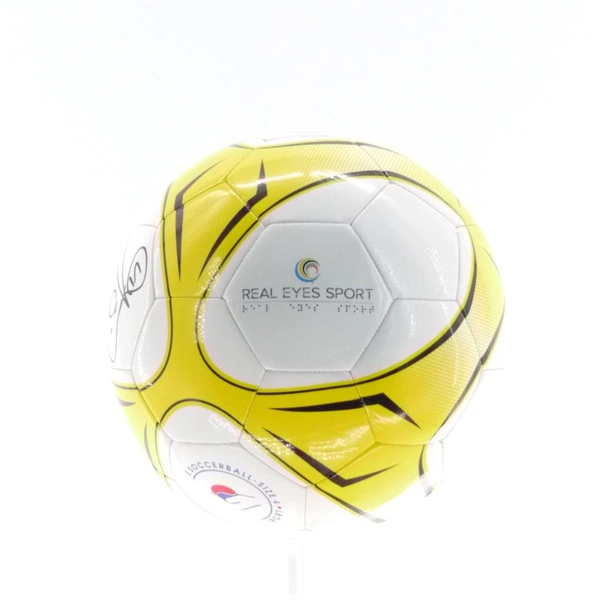 Il pallone sonoro è stato autografato da Rio Ferdinand.