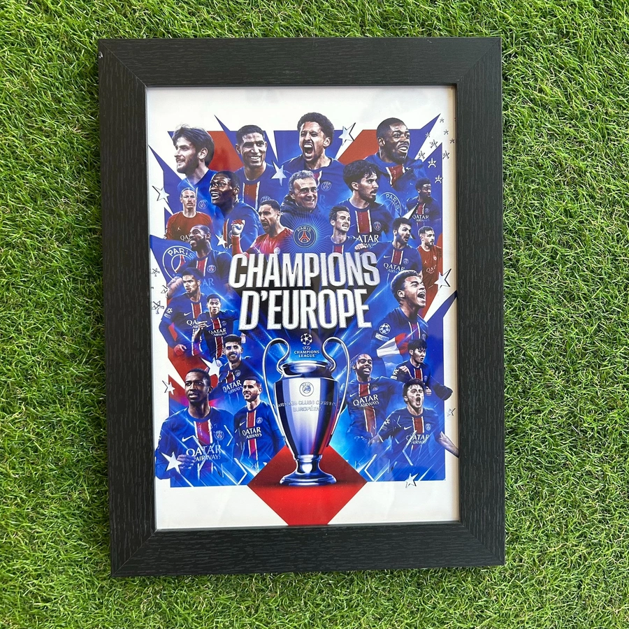 Poster con stampa "PSG campioni d'Europa" incorniciato.