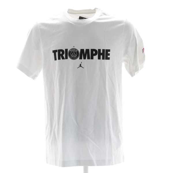 T-shirt Jordan bianca stampata, ufficiale del Paris Saint Germain 2025.