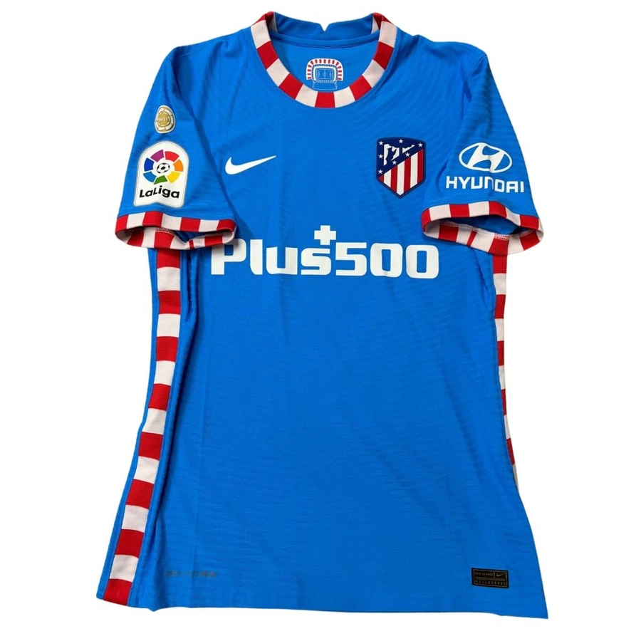 Maglia gara dell'Atletico Madrid preparata / indossata da Joao Felix in occasione di una partita di LaLiga, stagione 2021/22.